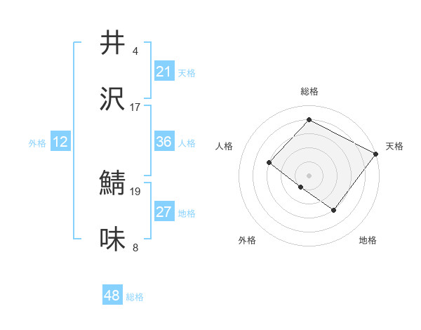 井沢 鯖味さんを姓名の画数から五運を鑑定