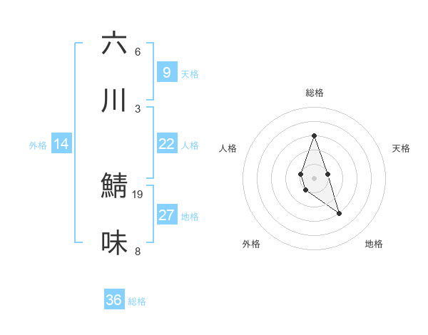 六川 鯖味さんを姓名の画数から五運を鑑定