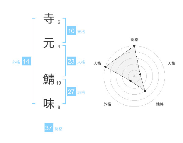 寺元 鯖味さんの総格は37画の5点!