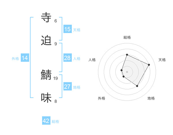 寺迫 鯖味さんの総格は42画の3点!