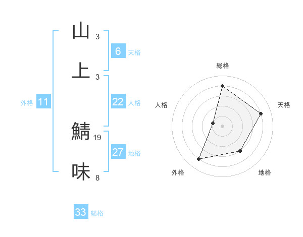 山上 鯖味さんを姓名の画数から五運を鑑定