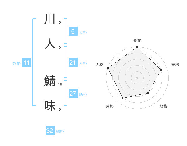 川人 鯖味さんの総格は32画の5点!