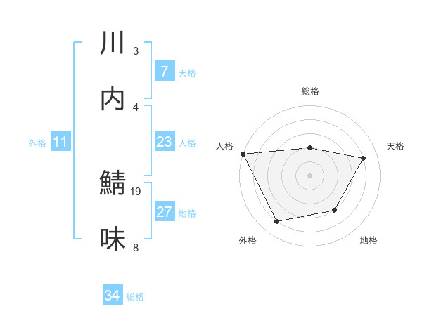川内 鯖味さんを姓名の画数から五運を鑑定