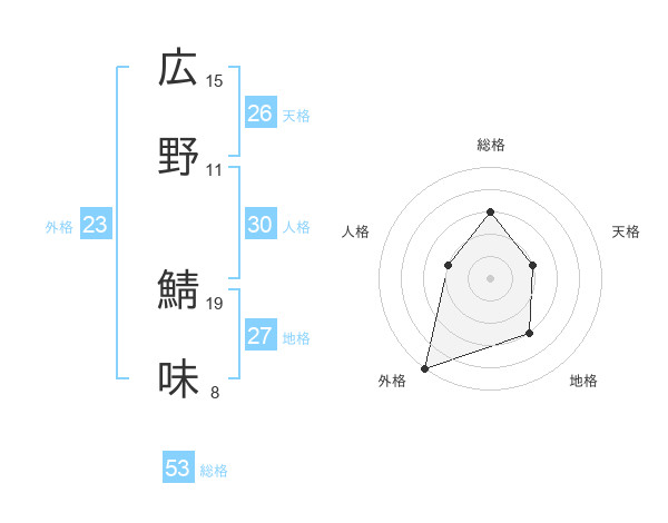 広野 鯖味さんを姓名の画数から五運を鑑定