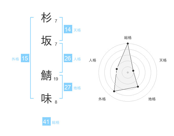 杉坂 鯖味さんを姓名の画数から五運を鑑定