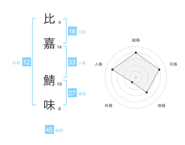 比嘉 鯖味さんの総格は45画の4点!