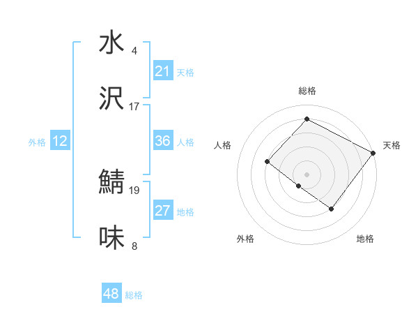 水沢 鯖味さんを姓名の画数から五運を鑑定