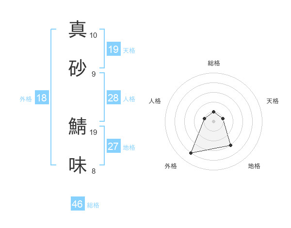 真砂 鯖味さんを姓名の画数から五運を鑑定