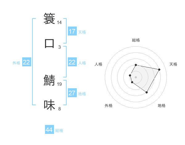 簑口 鯖味さんを姓名の画数から五運を鑑定