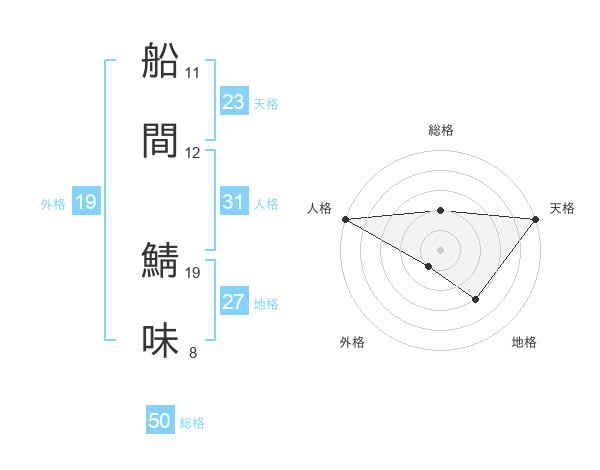 船間 鯖味さんの総格は50画の2点!