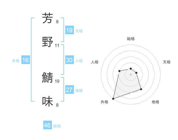 芳野 鯖味さんの天格は19画の1点!