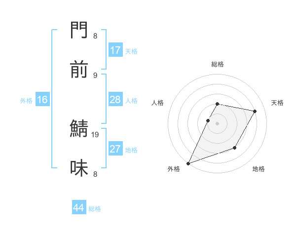 門前 鯖味さんの総格は44画の2点!