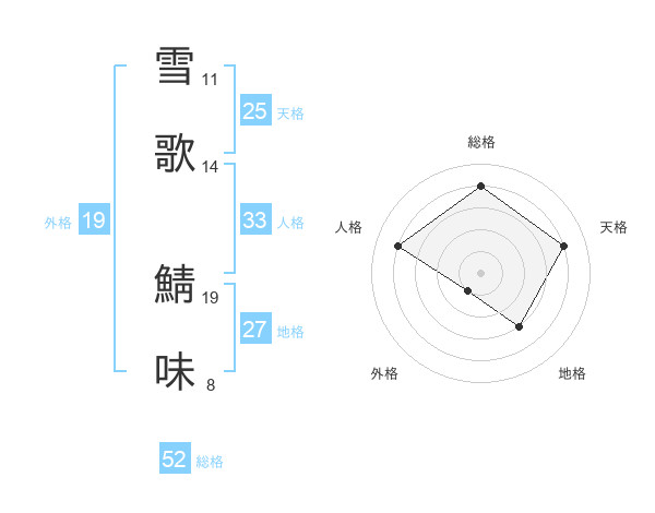雪歌 鯖味さんの総格は52画の4点!