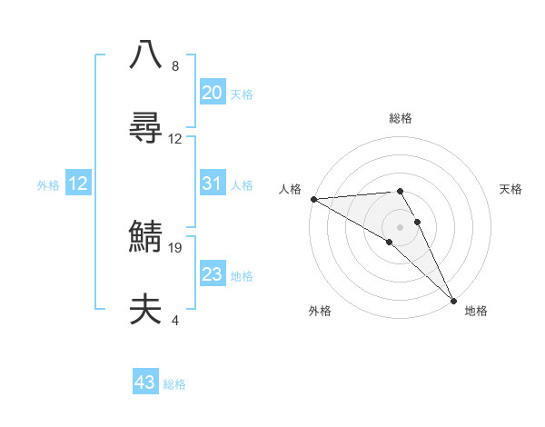 八尋 鯖夫さんを姓名の画数から五運を鑑定