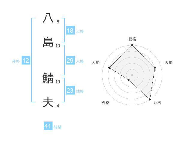 八島 鯖夫さんを姓名の画数から五運を鑑定