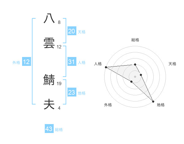 八雲 鯖夫さんを姓名の画数から五運を鑑定