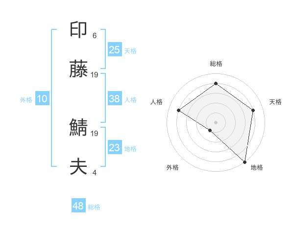印藤 鯖夫さんを姓名の画数から五運を鑑定