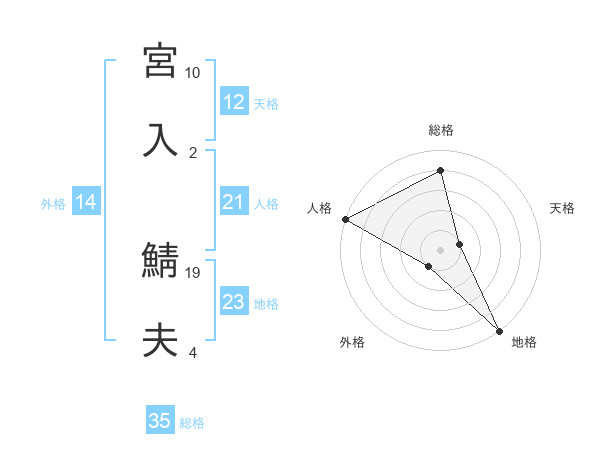 宮入 鯖夫さんの天格は12画の1点!