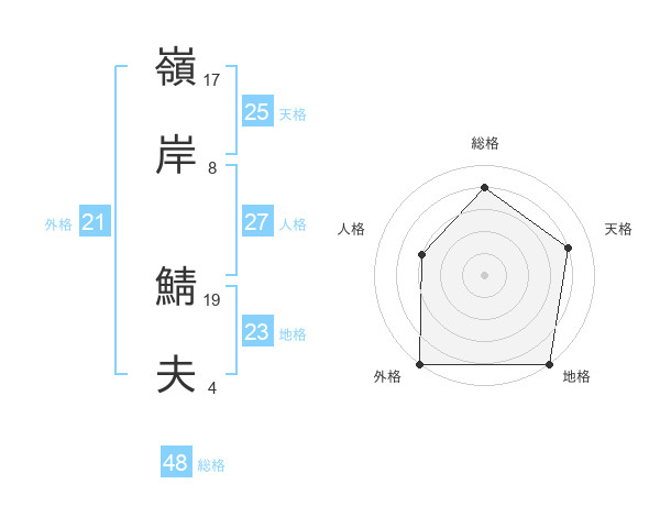 嶺岸 鯖夫さんの地格は23画の5点!