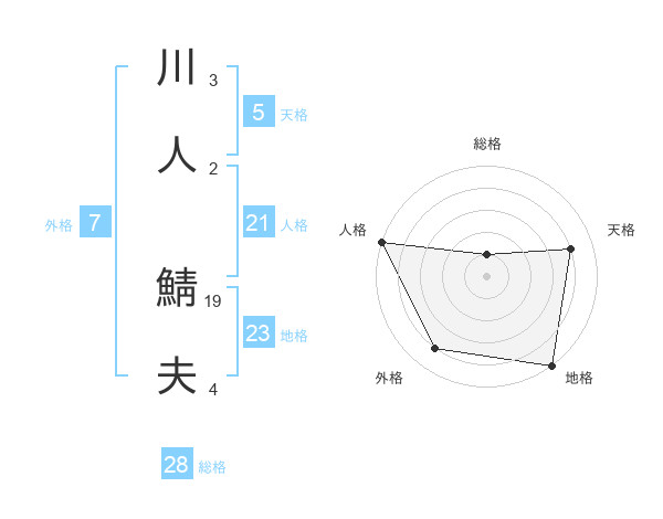 川人 鯖夫さんの天格は5画の4点!