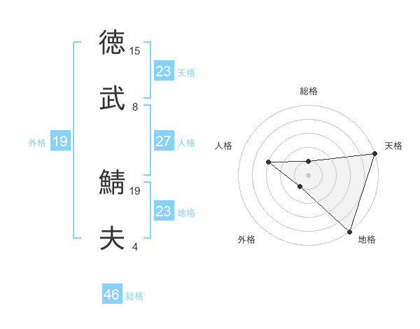 徳武 鯖夫さんを姓名の画数から五運を鑑定