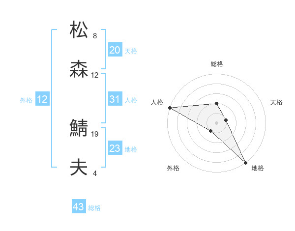 松森 鯖夫さんの総格は43画の2点!