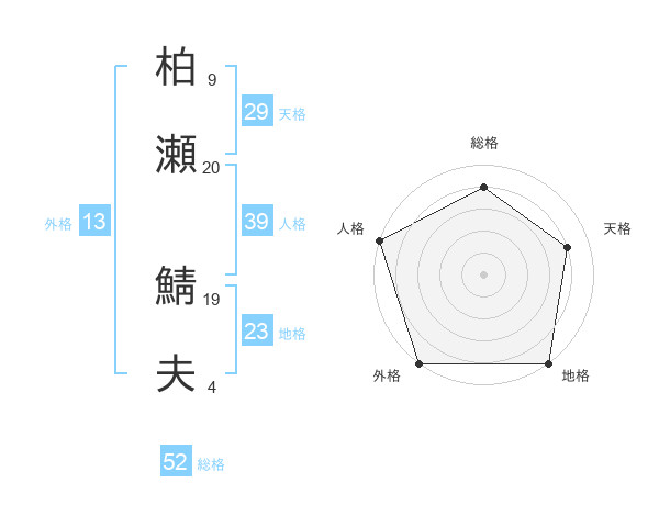 柏瀬 鯖夫さんを姓名の画数から五運を鑑定
