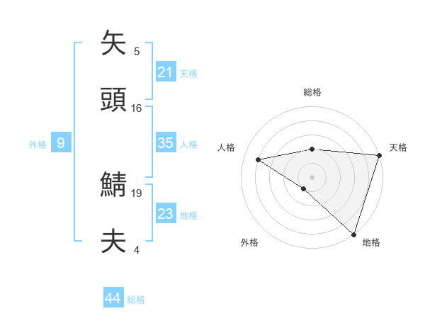 矢頭 鯖夫さんの総格は44画の2点!