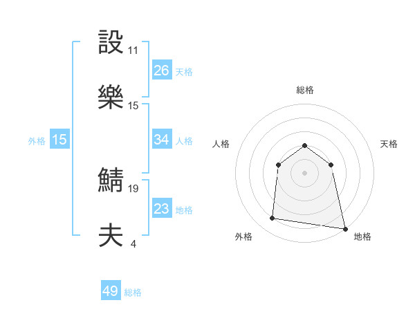 設樂 鯖夫さんを姓名の画数から五運を鑑定