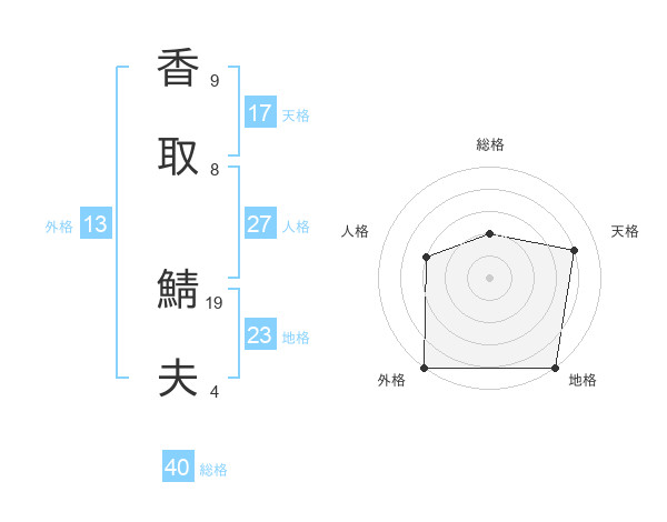 香取 鯖夫さんの天格は17画の4点!