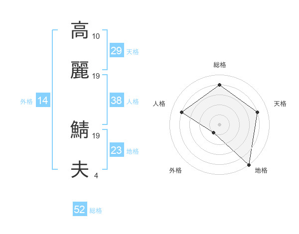 高麗 鯖夫さんの総格は52画の4点!