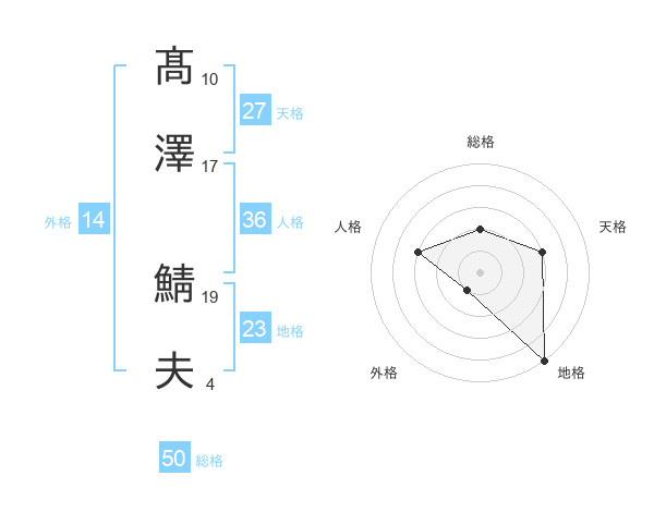 髙澤 鯖夫さんを姓名の画数から五運を鑑定
