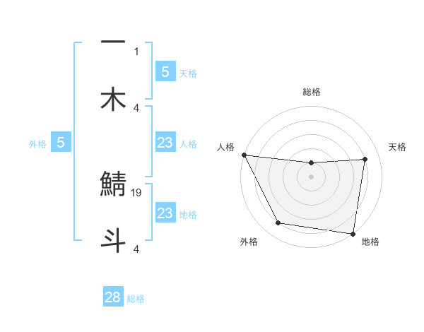 一木 鯖斗さんの地格は23画の5点!