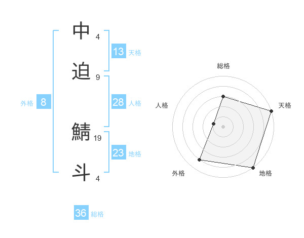 中迫 鯖斗さんの天格は13画の5点!