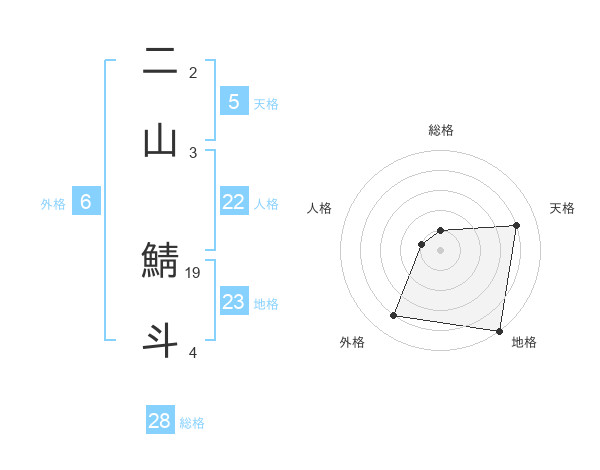 二山 鯖斗さんを姓名の画数から五運を鑑定