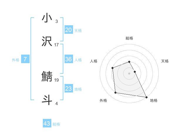小沢 鯖斗さんの総格は43画の2点!