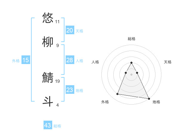 悠柳 鯖斗さんの総格は43画の2点!