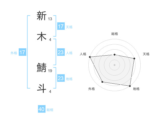 新木 鯖斗さんの外格は17画の4点!