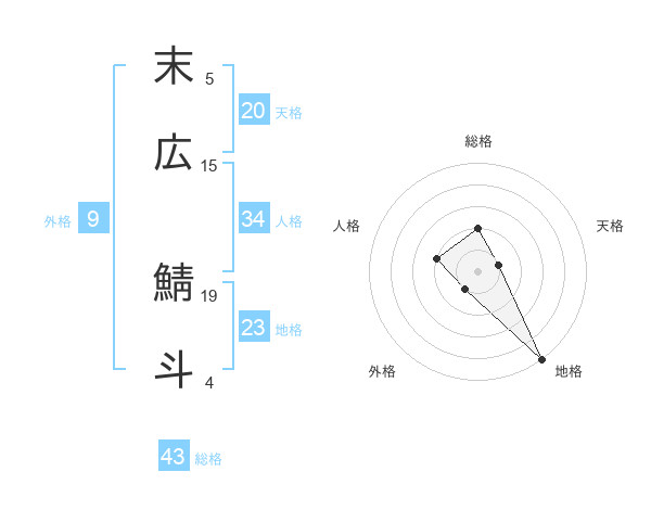 末広 鯖斗さんの地格は23画の5点!