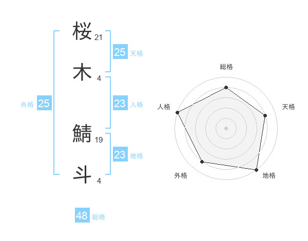 桜木 鯖斗さんの地格は23画の5点!