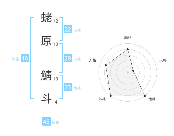 蛯原 鯖斗さんを姓名の画数から五運を鑑定