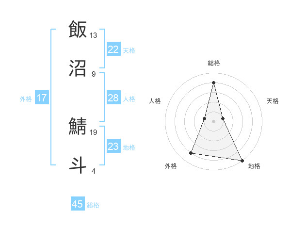 飯沼 鯖斗さんの総格は45画の4点!