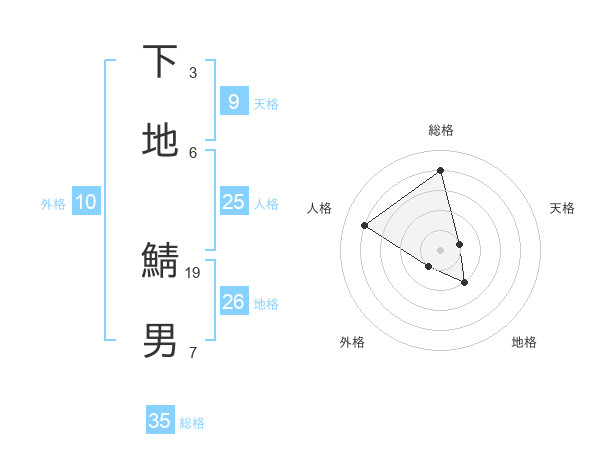 下地 鯖男さんの総格は35画の4点!