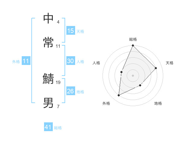 中常 鯖男さんを姓名の画数から五運を鑑定