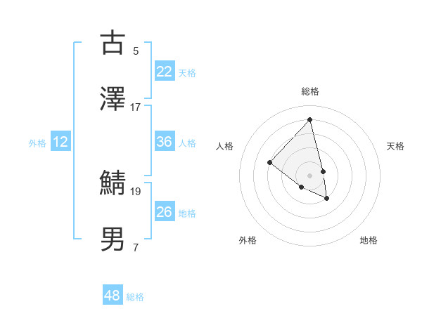 古澤 鯖男さんの総格は48画の4点!