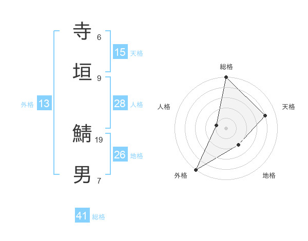 寺垣 鯖男さんの天格は15画の4点!