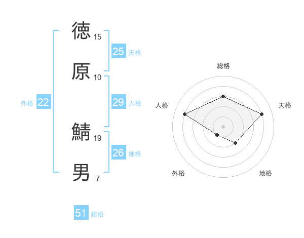 徳原 鯖男さんの総格は51画の3点!