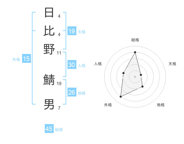 日比野 鯖男さんを姓名の画数から五運を鑑定