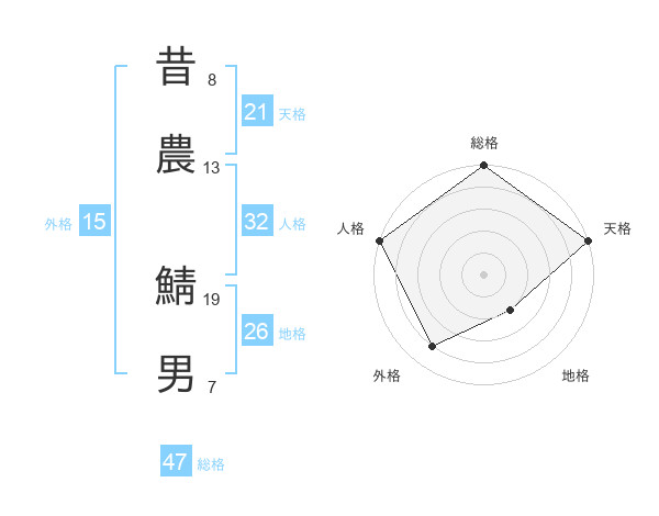 昔農 鯖男さんを姓名の画数から五運を鑑定