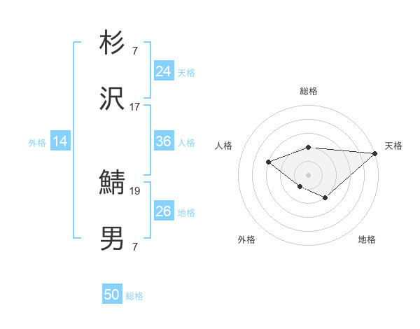 杉沢 鯖男さんを姓名の画数から五運を鑑定